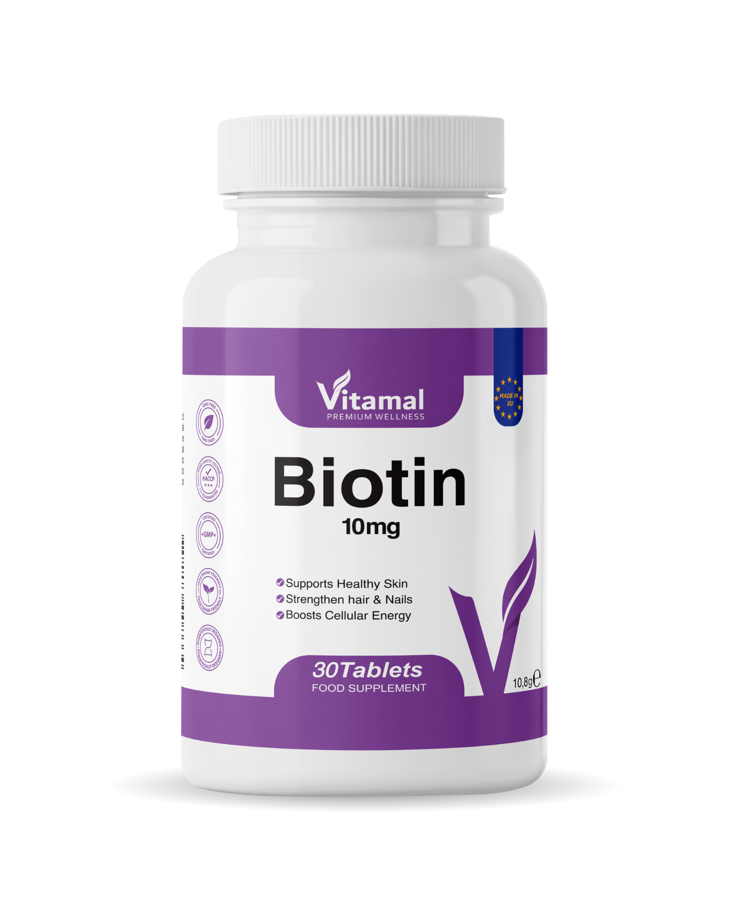 Vitamal’s Biotin 10,000 mcg Tablets offer an ultra-high strength dose of Vitamin B7, essential for beauty and metabolic health. This advanced formula supports thicker hair, radiant skin, stronger nails, and improved nutrient metabolism — ideal for individuals seeking targeted beauty enhancement.